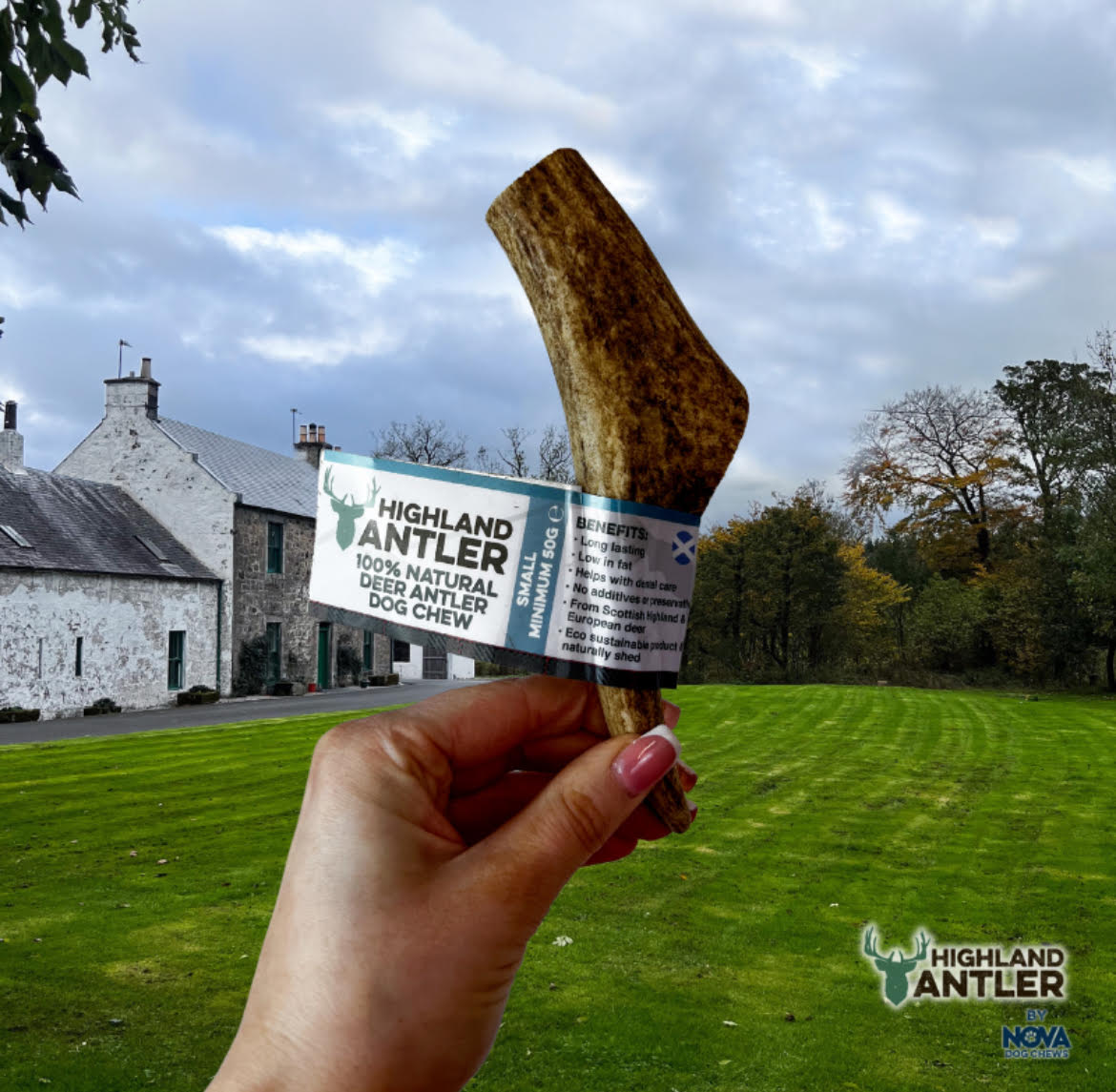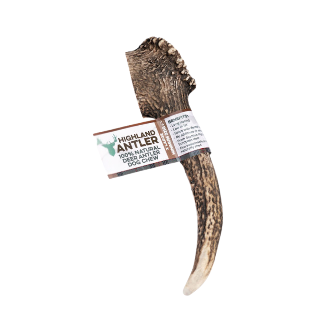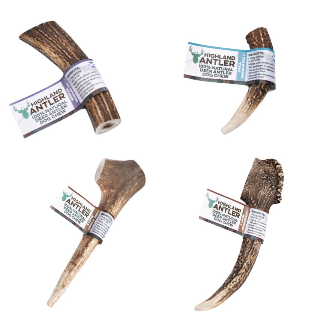 Antler Chews, crafted from Grade A and AA Red Deer antlers responsibly sourced from the highlands of Scotland. These naturally shed antlers are healthy, unprocessed, and packed with nutrients, providing a long-lasting and low-odor chewing experience for your furry friend. As they’re 100% natural, variations in size, shape, and color are expected, adding to their charm and uniqueness.